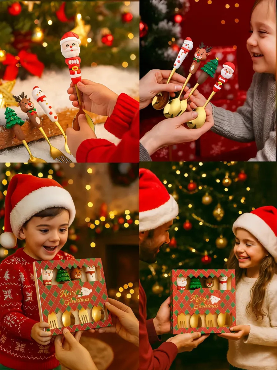 Новорічні дитячі столові набори, створений, щоб кожен прийом їжі став цікавишим. Свято починається не лише під ялинкою — воно може бути навіть у тарілці